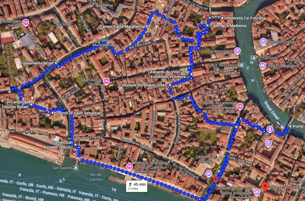 Note. I have prepared this walk for our first trip to Venice at the end of September, 2025. I will update it once we complete the walk.